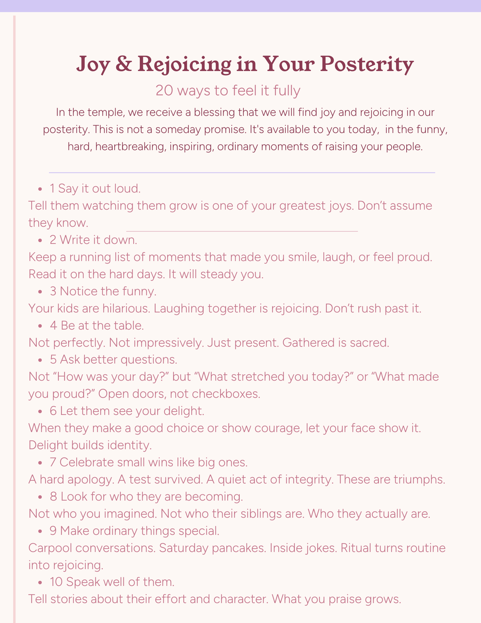 In the temple, we receive a blessing that we will find joy and rejoicing in our posterity. This is not a someday promise. It's available to you today, in the funny, hard, heartbreaking, inspiring, ordinary moments of raising your people.